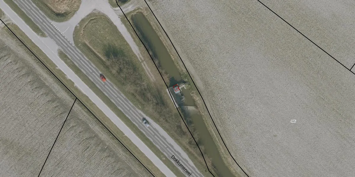 Het perceel waarop het adres ligt is HWD00-E-990. De afkorting 'HWD00' staat voor kadastrale gemeente Holwerd. De gemiddelde perceeloppervlakte in de kadastrale gemeente Holwerd is 1,1 ha. Dit perceel is met zijn 1,3 ha dus groter dan gemiddeld. Het grootste perceel in de kadastrale gemeente is 1,41 km². Het kleinste perceel heeft een oppervlakte van 0 m². Op het perceel bevinden zich geen andere adressen. De laatste wijziging in het de Basisregistratie Kadaster (BRK) was op 15-01-1998.