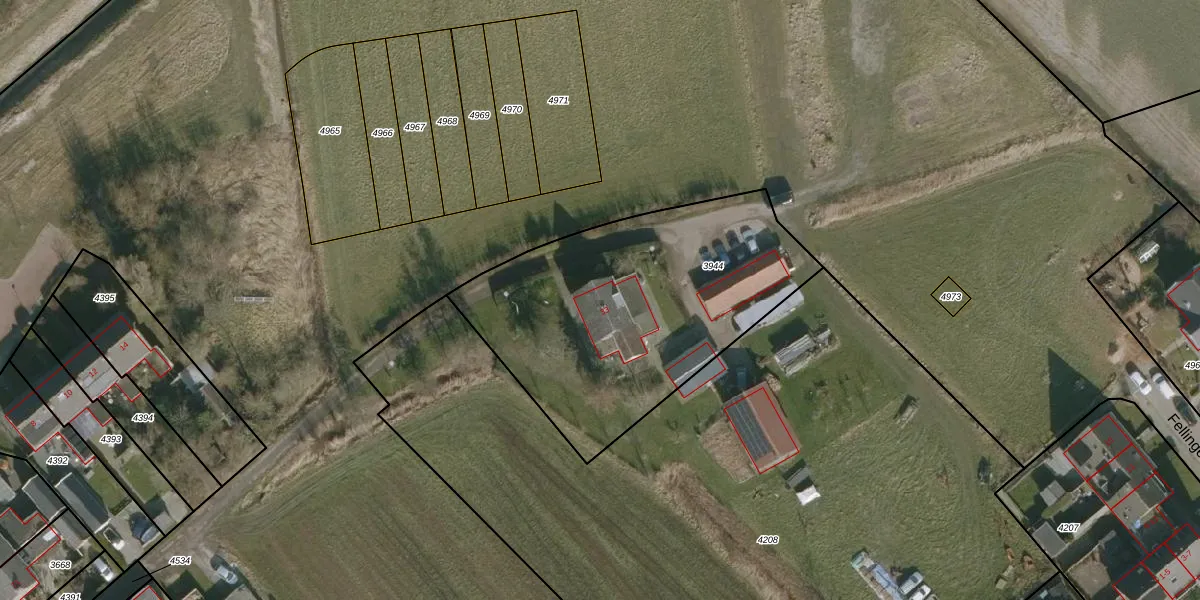 Het perceel waarop Fellingen 33 staat heeft een oppervlakte van 1445 m². Dit is een zeer groot perceel. De perceeloppervlakte wordt geregistreerd door het Kadaster. Gedetailleerde informatie over de maten van dit perceel kunt u vinden in het rapport Kadastrale kaart met maatvoering van Fellingen 33.