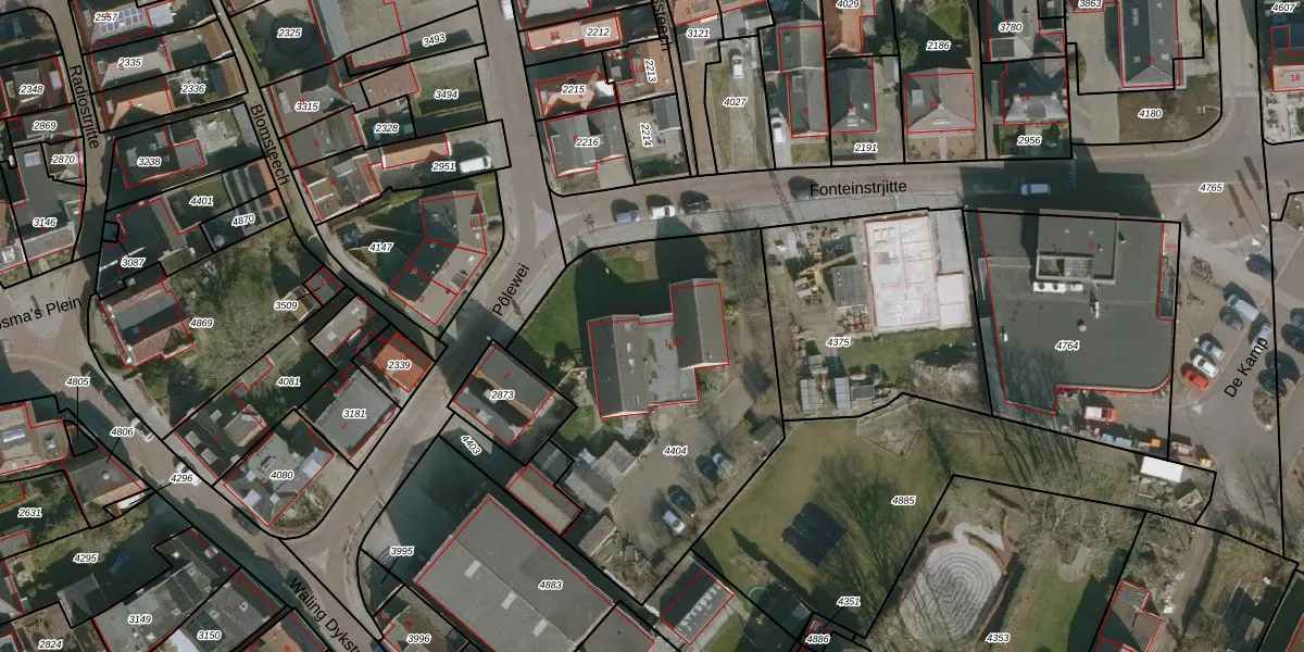 Het perceel waarop Fonteinstrjitte 1 staat heeft een oppervlakte van 1630 m². Dit is een zeer groot perceel. De perceeloppervlakte wordt geregistreerd door het Kadaster. Gedetailleerde informatie over de maten van dit perceel kunt u vinden in het rapport Kadastrale kaart met maatvoering van Fonteinstrjitte 1.