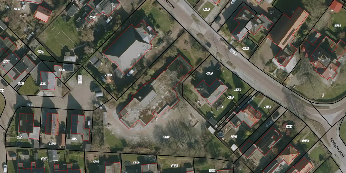 Het perceel waarop Stasjonswei 12 staat heeft een oppervlakte van 3178 m². Dit is een zeer groot perceel. De perceeloppervlakte wordt geregistreerd door het Kadaster. Gedetailleerde informatie over de maten van dit perceel kunt u vinden in het rapport Kadastrale kaart met maatvoering van Stasjonswei 12.