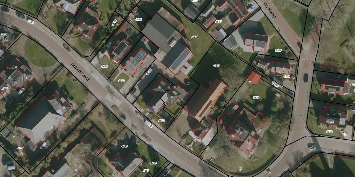 Het perceel waarop Stasjonswei 21 staat heeft een oppervlakte van 1648 m². Dit is een zeer groot perceel. De perceeloppervlakte wordt geregistreerd door het Kadaster. Gedetailleerde informatie over de maten van dit perceel kunt u vinden in het rapport Kadastrale kaart met maatvoering van Stasjonswei 21.