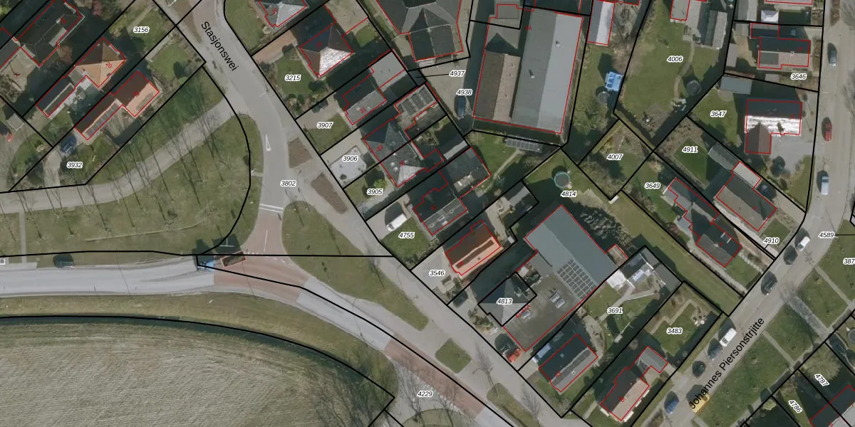 Het perceel waarop Stasjonswei 37 staat heeft een oppervlakte van 590 m². Dit is een groot perceel. De perceeloppervlakte wordt geregistreerd door het Kadaster. Gedetailleerde informatie over de maten van dit perceel kunt u vinden in het rapport Kadastrale kaart met maatvoering van Stasjonswei 37.
