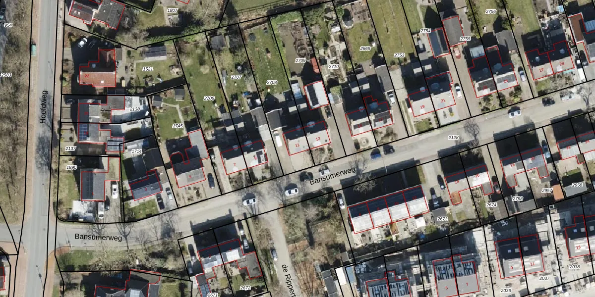 Het perceel waarop Bansumerweg 11 staat heeft een oppervlakte van 577 m². Dit is een groot perceel. De perceeloppervlakte wordt geregistreerd door het Kadaster. Gedetailleerde informatie over de maten van dit perceel kunt u vinden in het rapport Kadastrale kaart met maatvoering van Bansumerweg 11.