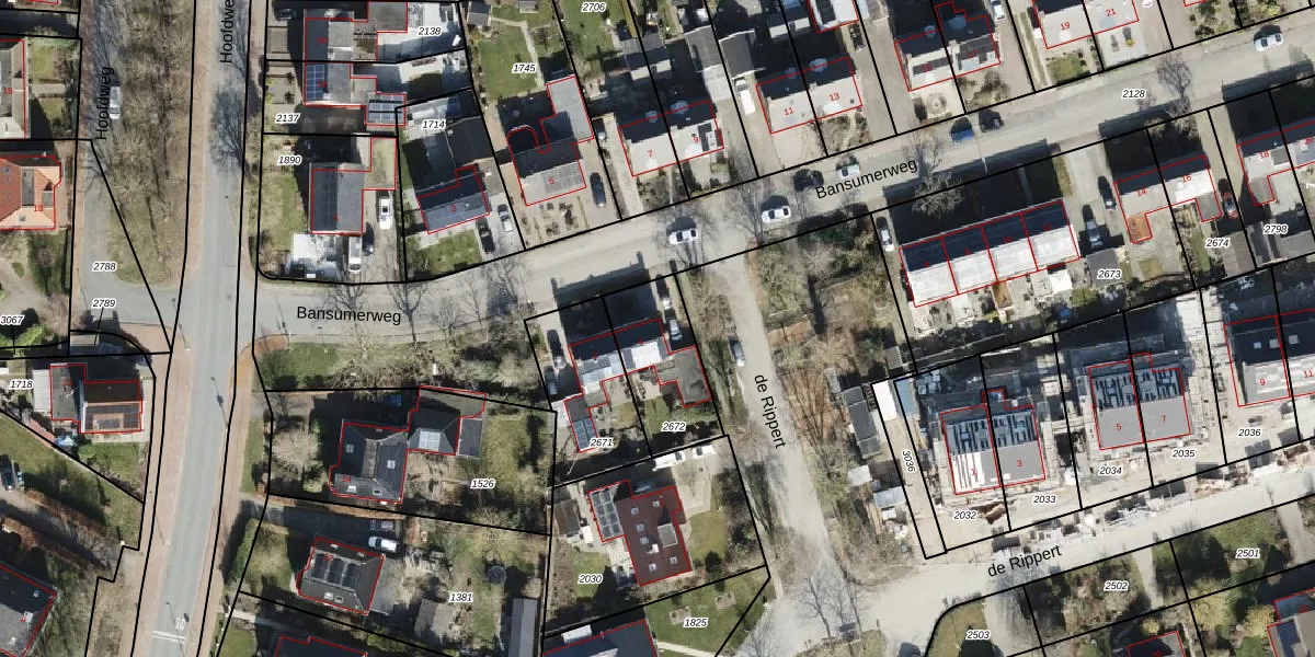 Gebruik de zoekbalk of klik op een perceel voor informatie over de adressen binnen dit perceel.