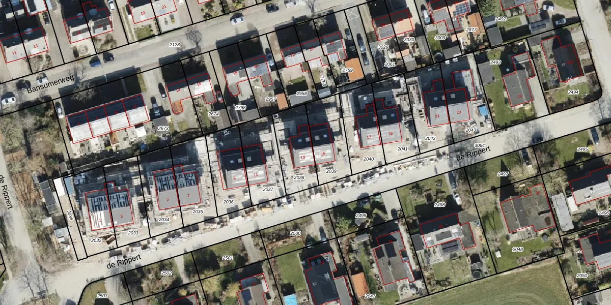 Het perceel waarop de Rippert 13 staat heeft een oppervlakte van 310 m². Dit is een groot perceel. De perceeloppervlakte wordt geregistreerd door het Kadaster. Gedetailleerde informatie over de maten van dit perceel kunt u vinden in het rapport Kadastrale kaart met maatvoering van de Rippert 13.
