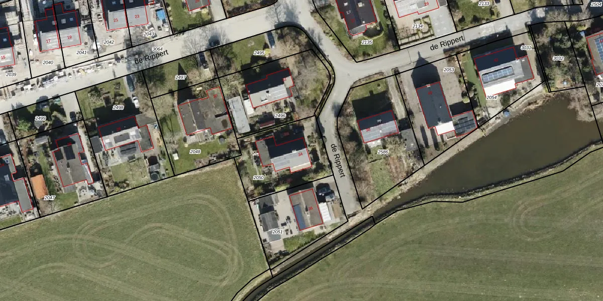 Het perceel waarop de Rippert 34 staat heeft een oppervlakte van 598 m². Dit is een groot perceel. De perceeloppervlakte wordt geregistreerd door het Kadaster. Gedetailleerde informatie over de maten van dit perceel kunt u vinden in het rapport Kadastrale kaart met maatvoering van de Rippert 34.
