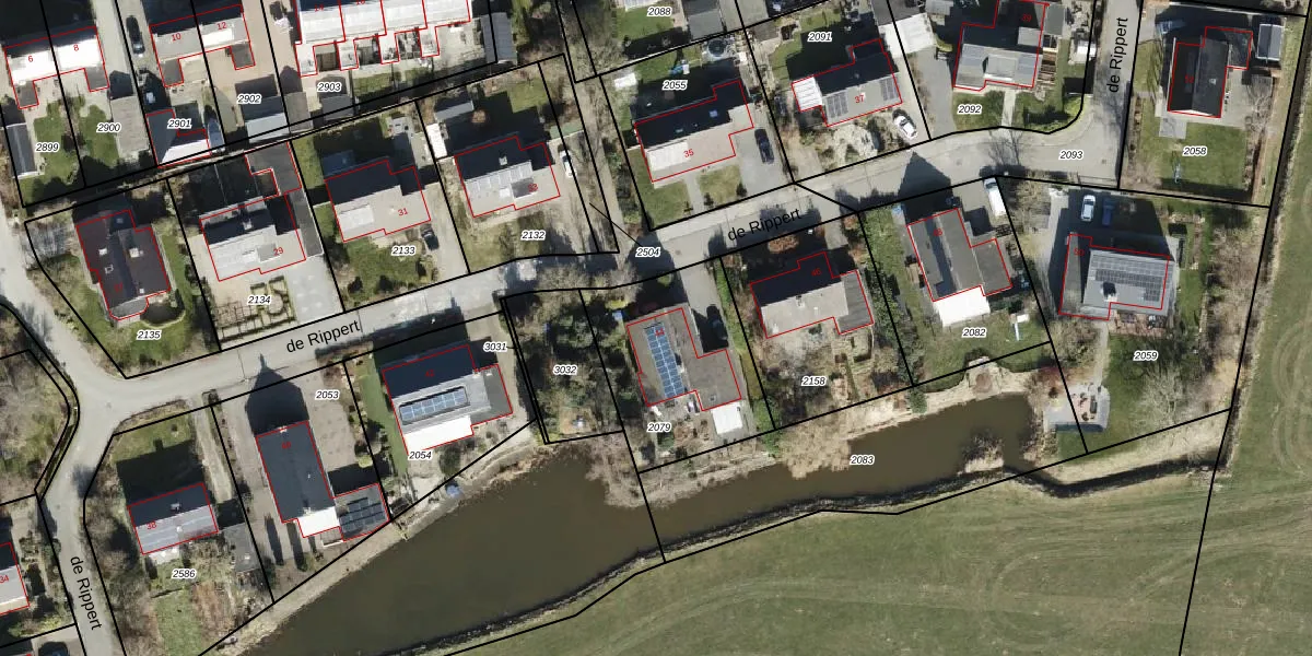 Het perceel waarop de Rippert 44 staat heeft een oppervlakte van 623 m². Dit is een groot perceel. De perceeloppervlakte wordt geregistreerd door het Kadaster. Gedetailleerde informatie over de maten van dit perceel kunt u vinden in het rapport Kadastrale kaart met maatvoering van de Rippert 44.