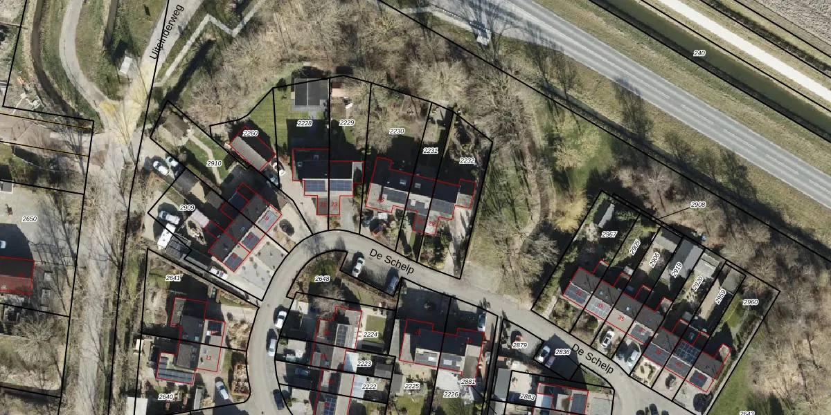Gebruik de zoekbalk of klik op een perceel voor informatie over de adressen binnen dit perceel.