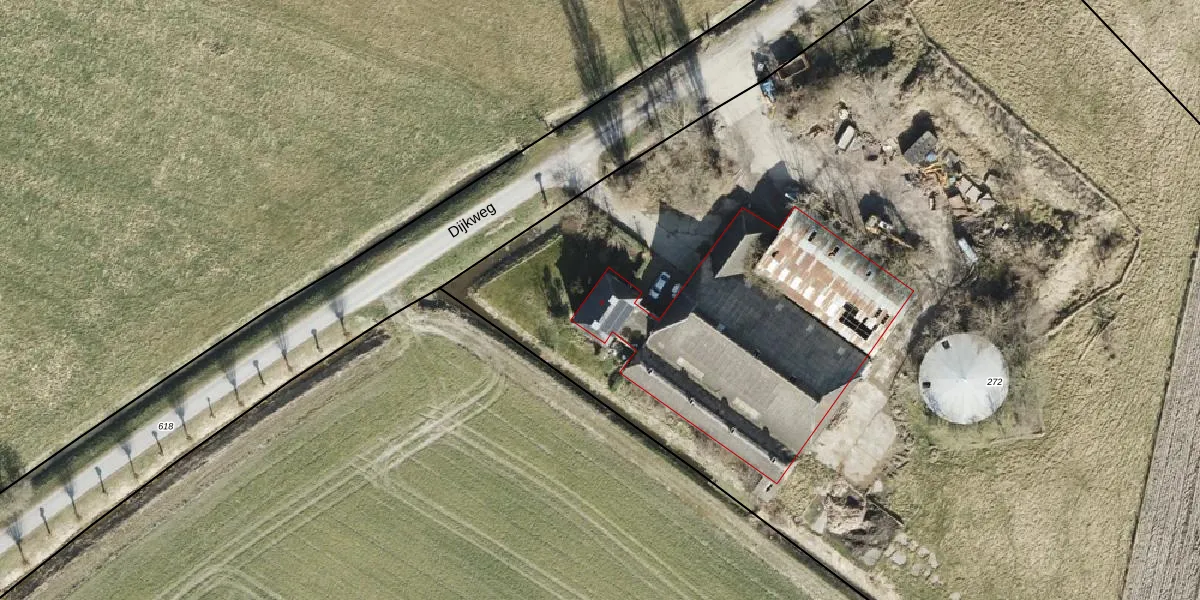 Het perceel waarop Dijkweg 8 staat heeft een oppervlakte van 1,2 ha. Dit is een zeer groot perceel. De perceeloppervlakte wordt geregistreerd door het Kadaster. Gedetailleerde informatie over de maten van dit perceel kunt u vinden in het rapport Kadastrale kaart met maatvoering van Dijkweg 8.