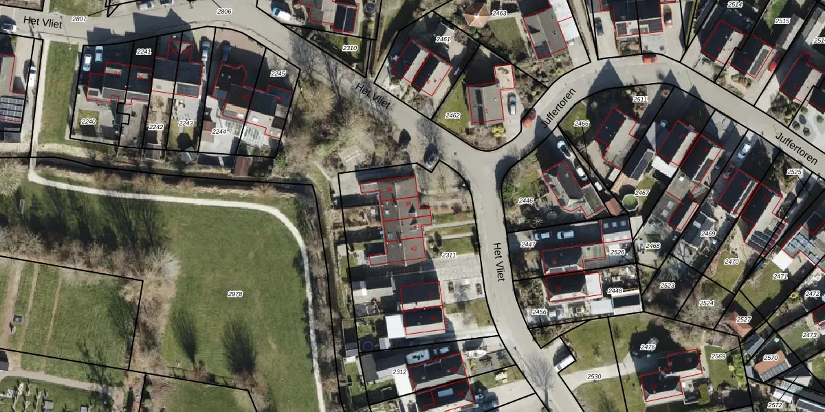 Het perceel waarop Het Vliet 38 staat heeft een oppervlakte van 1379 m². Dit is een zeer groot perceel. De perceeloppervlakte wordt geregistreerd door het Kadaster. Gedetailleerde informatie over de maten van dit perceel kunt u vinden in het rapport Kadastrale kaart met maatvoering van Het Vliet 38.