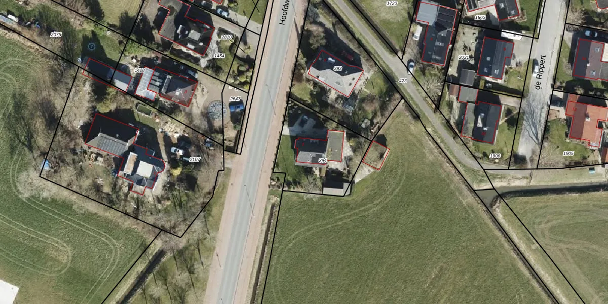 Het perceel waarop Hoofdweg 2 staat heeft een oppervlakte van 663 m². Dit is een groot perceel. De perceeloppervlakte wordt geregistreerd door het Kadaster. Gedetailleerde informatie over de maten van dit perceel kunt u vinden in het rapport Kadastrale kaart met maatvoering van Hoofdweg 2.