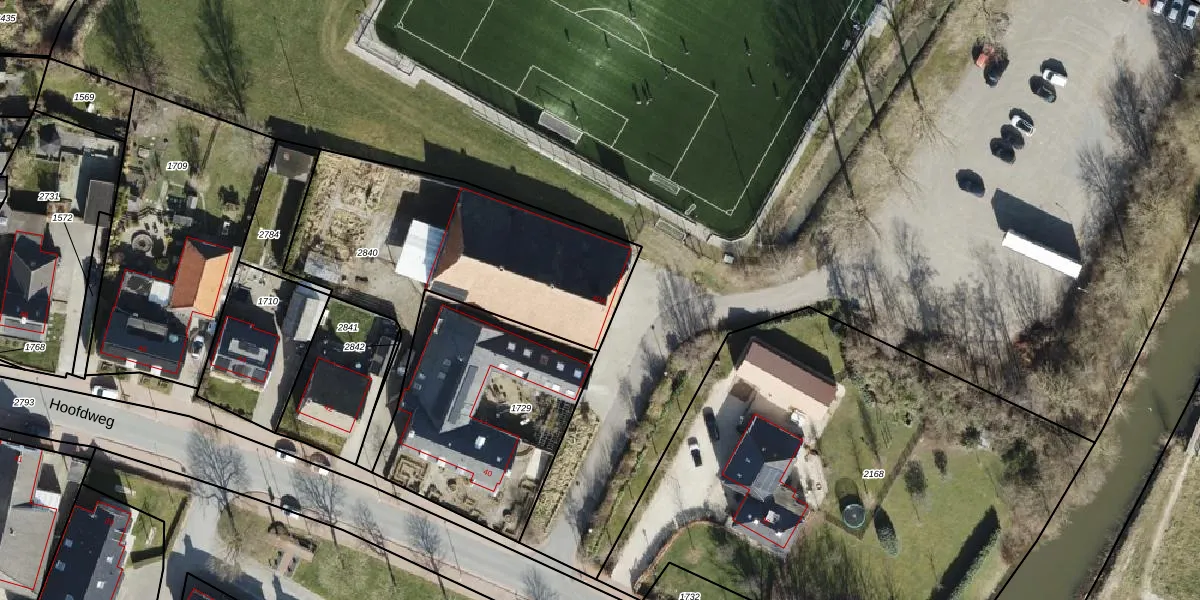 Het perceel waarop Hoofdweg 40-A staat heeft een oppervlakte van 1243 m². Dit is een zeer groot perceel. De perceeloppervlakte wordt geregistreerd door het Kadaster. Gedetailleerde informatie over de maten van dit perceel kunt u vinden in het rapport Kadastrale kaart met maatvoering van Hoofdweg 40-A.