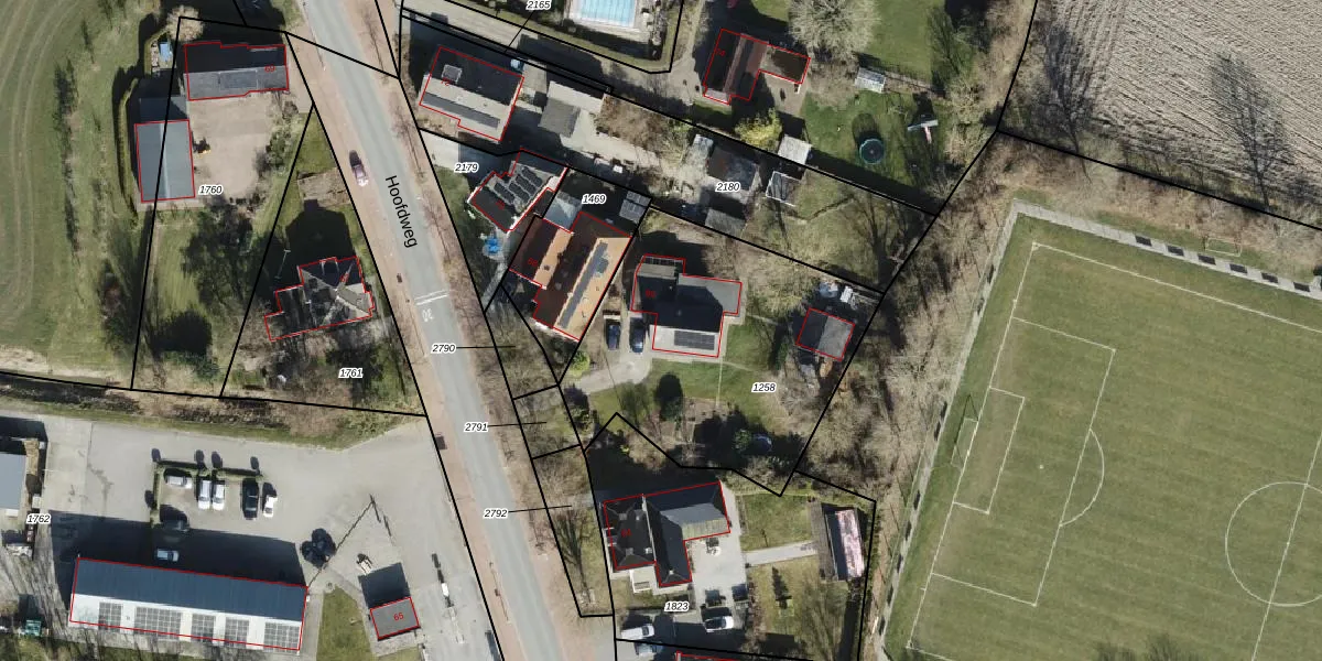 Het perceel waarop Hoofdweg 66 staat heeft een oppervlakte van 1270 m². Dit is een zeer groot perceel. De perceeloppervlakte wordt geregistreerd door het Kadaster. Gedetailleerde informatie over de maten van dit perceel kunt u vinden in het rapport Kadastrale kaart met maatvoering van Hoofdweg 66.