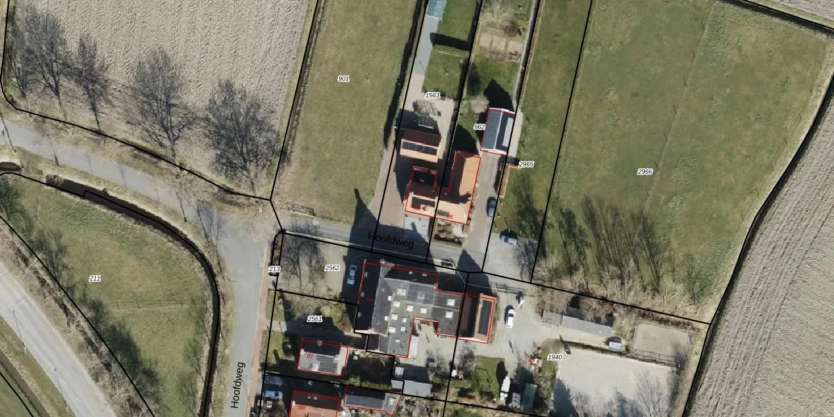 Het perceel waarop Hoofdweg 88 staat heeft een oppervlakte van 1090 m². Dit is een zeer groot perceel. De perceeloppervlakte wordt geregistreerd door het Kadaster. Gedetailleerde informatie over de maten van dit perceel kunt u vinden in het rapport Kadastrale kaart met maatvoering van Hoofdweg 88.