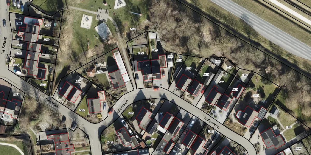 Gebruik de zoekbalk of klik op een perceel voor informatie over de adressen binnen dit perceel.