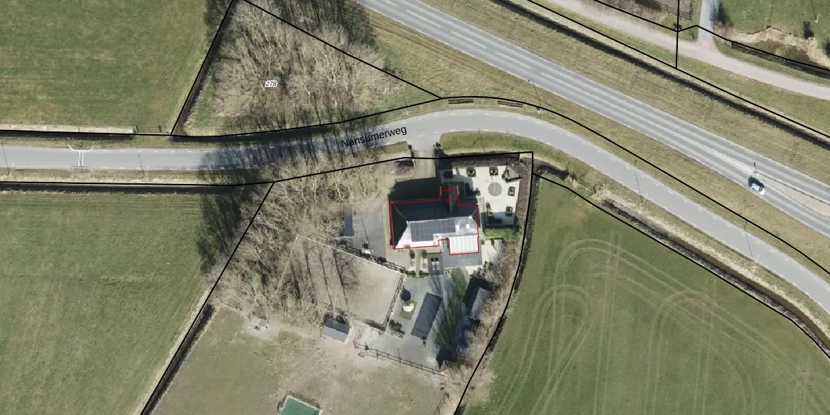 Het perceel waarop Nansumerweg 60 staat heeft een oppervlakte van 1,0 ha. Dit is een zeer groot perceel. De perceeloppervlakte wordt geregistreerd door het Kadaster. Gedetailleerde informatie over de maten van dit perceel kunt u vinden in het rapport Kadastrale kaart met maatvoering van Nansumerweg 60.