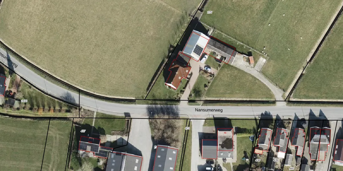 Het perceel waarop Nansumerweg 9 staat heeft een oppervlakte van 8645 m². Dit is een zeer groot perceel. De perceeloppervlakte wordt geregistreerd door het Kadaster. Gedetailleerde informatie over de maten van dit perceel kunt u vinden in het rapport Kadastrale kaart met maatvoering van Nansumerweg 9.