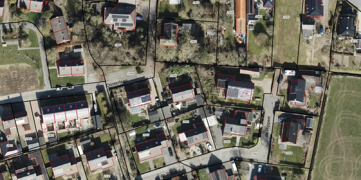 Gebruik de zoekbalk of klik op een perceel voor informatie over de adressen binnen dit perceel.
