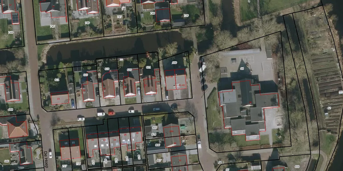 Het perceel waarop De Hoep 39 staat heeft een oppervlakte van 457 m². Dit is een groot perceel. De perceeloppervlakte wordt geregistreerd door het Kadaster. Gedetailleerde informatie over de maten van dit perceel kunt u vinden in het rapport Kadastrale kaart met maatvoering van De Hoep 39.