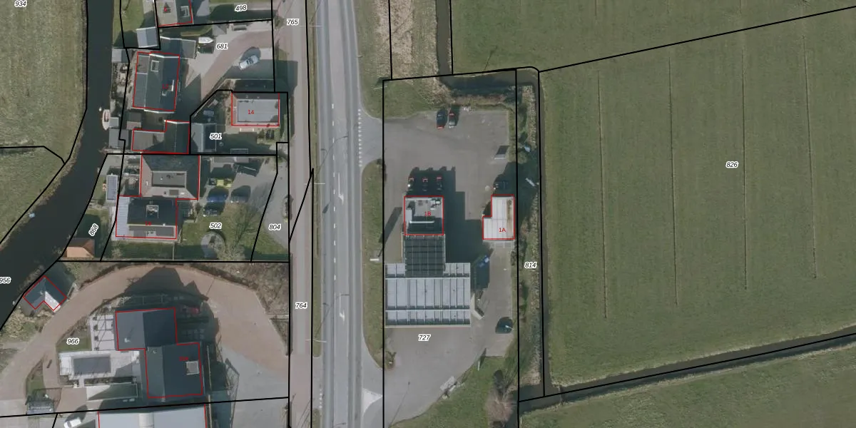 Het perceel waarop Jeltewei 1-B staat heeft een oppervlakte van 3672 m². Dit is een zeer groot perceel. De perceeloppervlakte wordt geregistreerd door het Kadaster. Gedetailleerde informatie over de maten van dit perceel kunt u vinden in het rapport Kadastrale kaart met maatvoering van Jeltewei 1-B.
