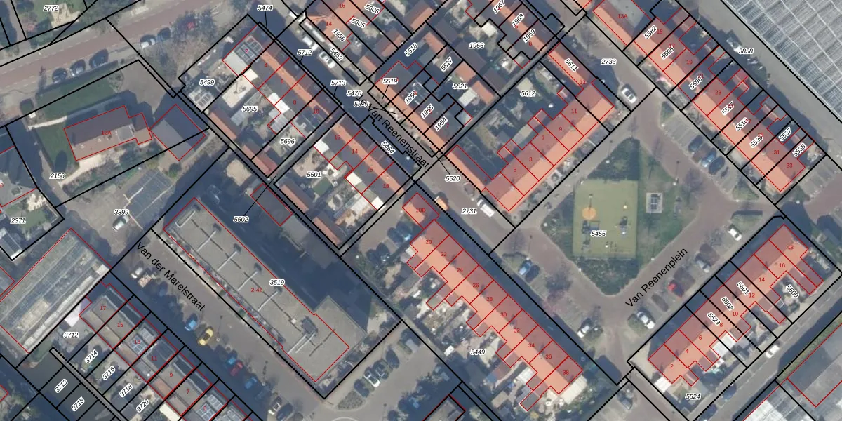 1e Van Reenenstraat 18-B is gelegen op kadastraal perceel NWK01A5449. Deze kadastrale aanduiding is uniek en wordt gebruikt door het Kadaster om eigendomsrechten en andere zakelijke rechten vast te leggen. Het perceel maakt onderdeel uit van de kadastrale gemeente Naaldwijk.