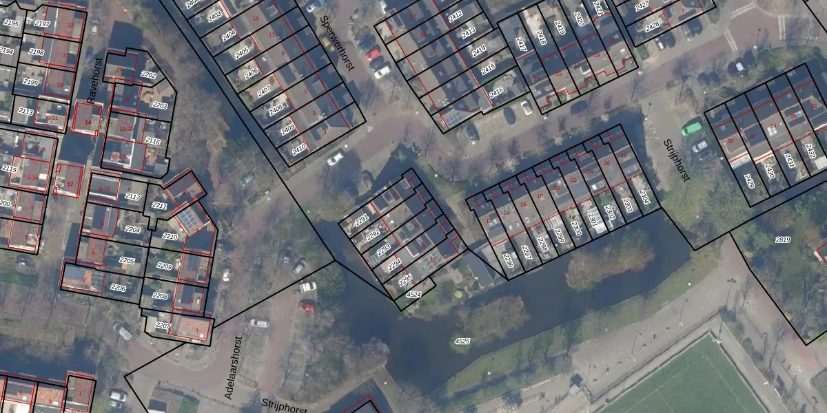 Gebruik de zoekbalk of klik op een perceel voor informatie over de adressen binnen dit perceel.