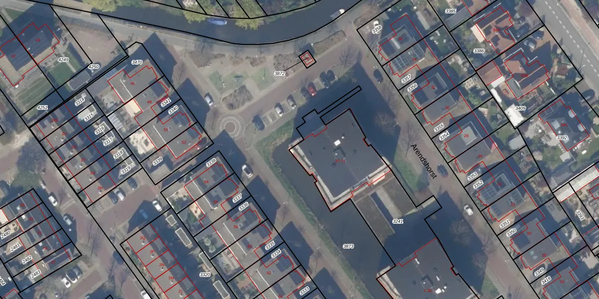 Het perceel waarop Arendshorst 43 staat heeft een oppervlakte van 1796 m². Dit is een zeer groot perceel. De perceeloppervlakte wordt geregistreerd door het Kadaster. Gedetailleerde informatie over de maten van dit perceel kunt u vinden in het rapport Kadastrale kaart met maatvoering van Arendshorst 43.