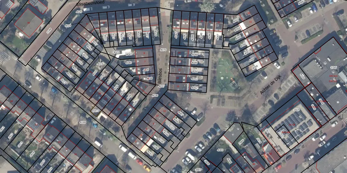 Gebruik de zoekbalk of klik op een perceel voor informatie over de adressen binnen dit perceel.