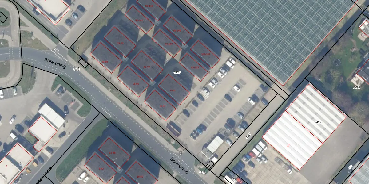 Boswoning 81 is gelegen op kadastraal perceel NWK01H3138. Deze kadastrale aanduiding is uniek en wordt gebruikt door het Kadaster om eigendomsrechten en andere zakelijke rechten vast te leggen. Het perceel maakt onderdeel uit van de kadastrale gemeente Naaldwijk.