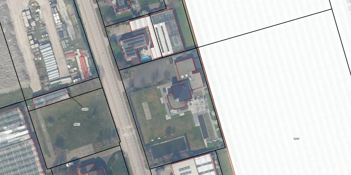 Het adres ligt op het perceel NWK01-A-5201, dat zich in de kadastrale gemeente Naaldwijk bevindt. De oppervlakte van het perceel is 2700 m². Dat is groter dan gemiddeld in Naaldwijk, waar de gemiddelde perceeloppervlakte op 1552,09 m² ligt. De grootste perceeloppervlakte in de kadastrale gemeente is 49,5 ha. De kleinste oppervlakte bedraagt 0 m². Op het perceel bevinden zich geen andere adressen. In de Basisregistratie Kadaster (BRK) werden de grenzen van het perceel geregistreerd op 09-01-2008.