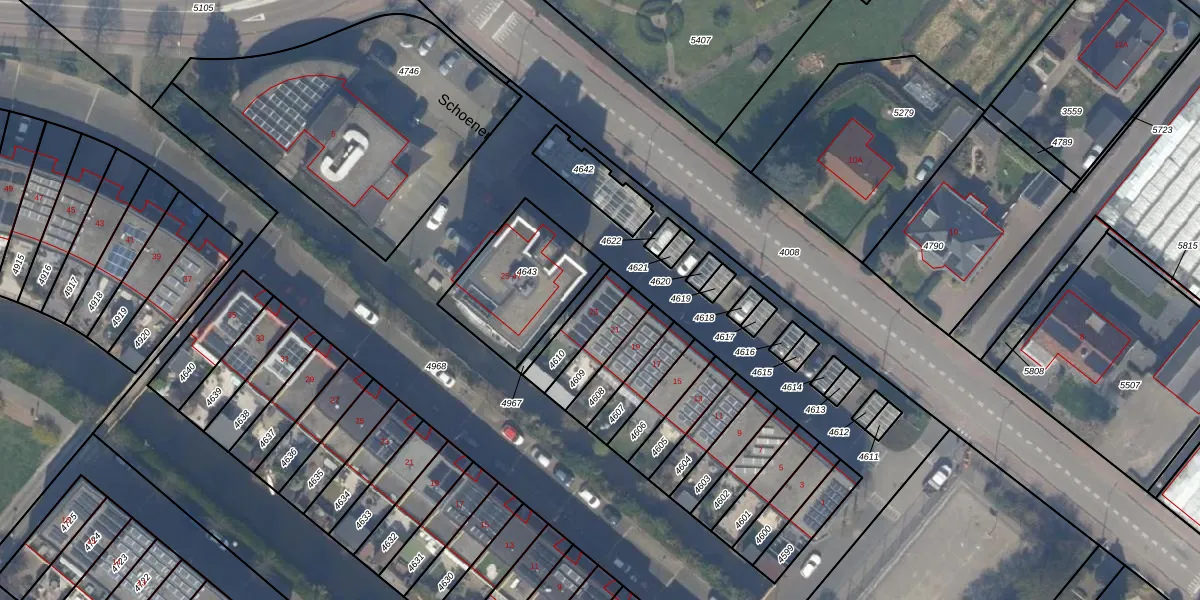 Schoener 23 is gelegen op kadastraal perceel NWK01A4610. Deze kadastrale aanduiding is uniek en wordt gebruikt door het Kadaster om eigendomsrechten en andere zakelijke rechten vast te leggen. Het perceel maakt onderdeel uit van de kadastrale gemeente Naaldwijk.