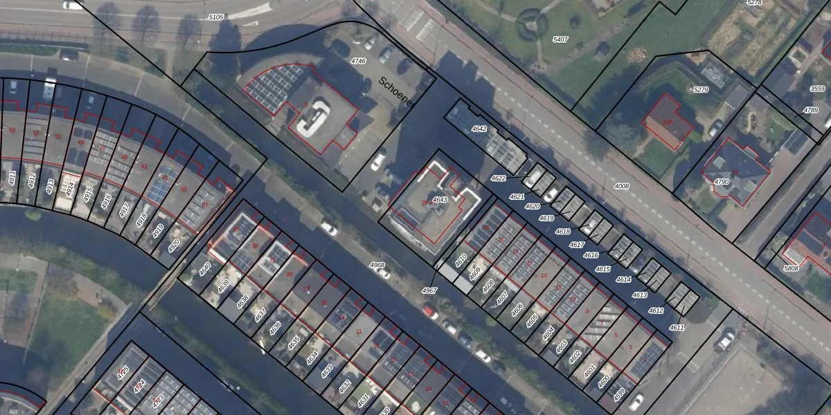 Het perceel waarop Schoener 45 staat heeft een oppervlakte van 391 m². Dit is een groot perceel. De perceeloppervlakte wordt geregistreerd door het Kadaster. Gedetailleerde informatie over de maten van dit perceel kunt u vinden in het rapport Kadastrale kaart met maatvoering van Schoener 45.