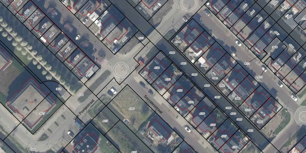 Het perceel waarop Socratesstraat 1 staat heeft een oppervlakte van 226 m². Dit is een middelgroot perceel. De perceeloppervlakte wordt geregistreerd door het Kadaster. Gedetailleerde informatie over de maten van dit perceel kunt u vinden in het rapport Kadastrale kaart met maatvoering van Socratesstraat 1.