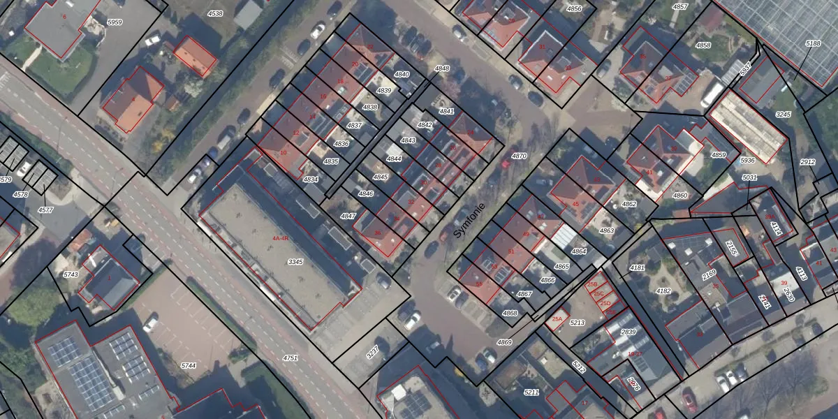 Het perceel waarop Symfonie 32 staat heeft een oppervlakte van 127 m². Dit is een middelgroot perceel. De perceeloppervlakte wordt geregistreerd door het Kadaster. Gedetailleerde informatie over de maten van dit perceel kunt u vinden in het rapport Kadastrale kaart met maatvoering van Symfonie 32.