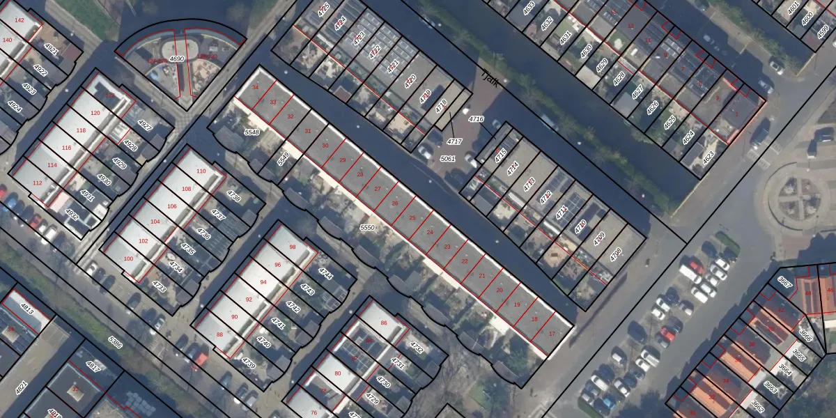 Het perceel waarop Tjalk 25 staat heeft een oppervlakte van 1528 m². Dit is een zeer groot perceel. De perceeloppervlakte wordt geregistreerd door het Kadaster. Gedetailleerde informatie over de maten van dit perceel kunt u vinden in het rapport Kadastrale kaart met maatvoering van Tjalk 25.
