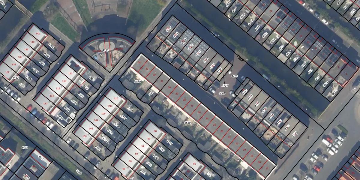 Het perceel waarop Tjalk 29 staat heeft een oppervlakte van 1528 m². Dit is een zeer groot perceel. De perceeloppervlakte wordt geregistreerd door het Kadaster. Gedetailleerde informatie over de maten van dit perceel kunt u vinden in het rapport Kadastrale kaart met maatvoering van Tjalk 29.
