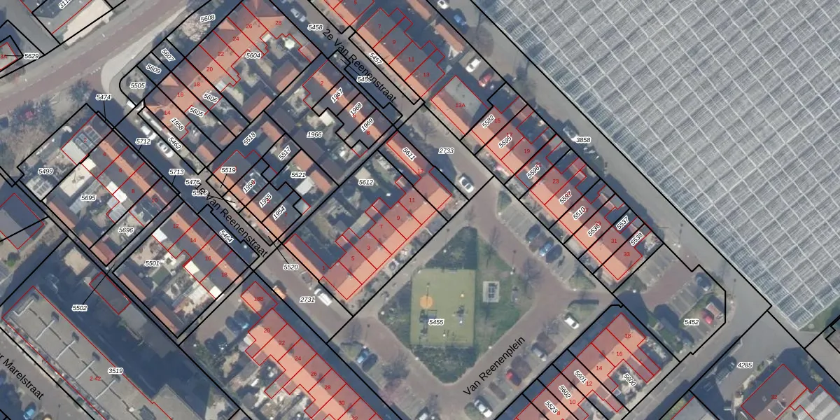Van Reenenplein 11 is gelegen op kadastraal perceel NWK01A5612. Deze kadastrale aanduiding is uniek en wordt gebruikt door het Kadaster om eigendomsrechten en andere zakelijke rechten vast te leggen. Het perceel maakt onderdeel uit van de kadastrale gemeente Naaldwijk.