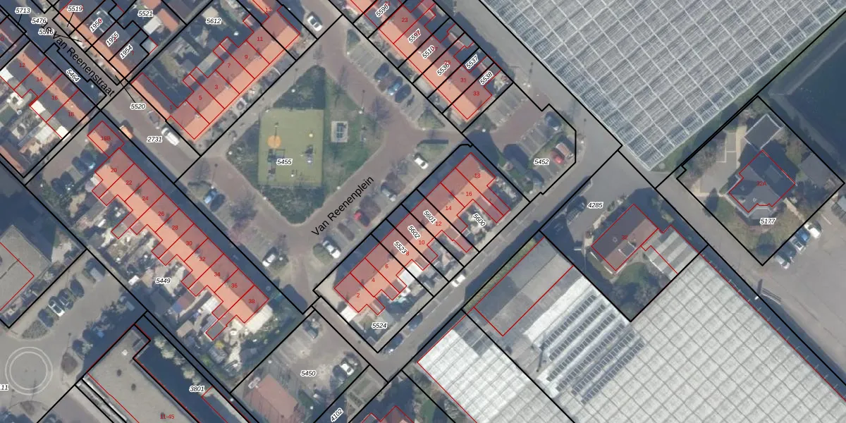 Van Reenenplein 12 is gelegen op kadastraal perceel NWK01A5601. Deze kadastrale aanduiding is uniek en wordt gebruikt door het Kadaster om eigendomsrechten en andere zakelijke rechten vast te leggen. Het perceel maakt onderdeel uit van de kadastrale gemeente Naaldwijk.