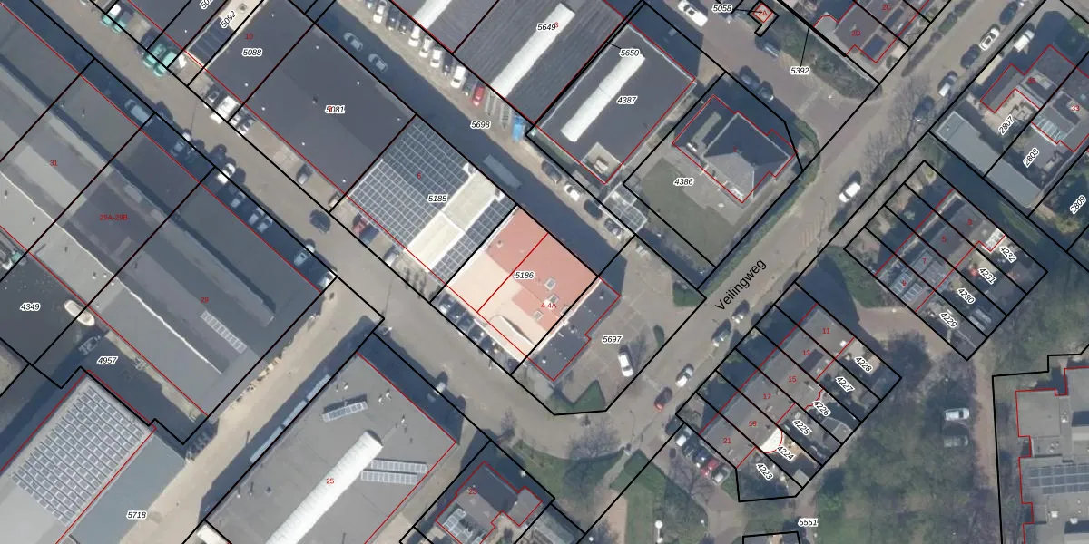 Veilingweg 4-A is gelegen op kadastraal perceel NWK01A5186. Deze kadastrale aanduiding is uniek en wordt gebruikt door het Kadaster om eigendomsrechten en andere zakelijke rechten vast te leggen. Het perceel maakt onderdeel uit van de kadastrale gemeente Naaldwijk.
