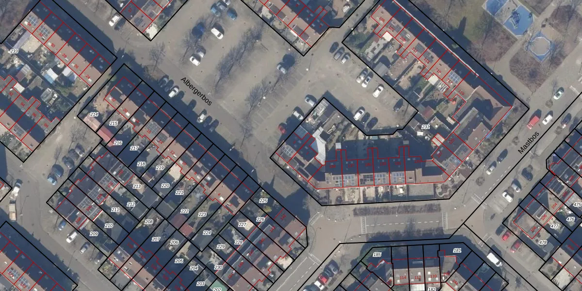 Het perceel waarop Albergerbos 3 staat heeft een oppervlakte van 3265 m². Dit is een zeer groot perceel. De perceeloppervlakte wordt geregistreerd door het Kadaster. Gedetailleerde informatie over de maten van dit perceel kunt u vinden in het rapport Kadastrale kaart met maatvoering van Albergerbos 3.
