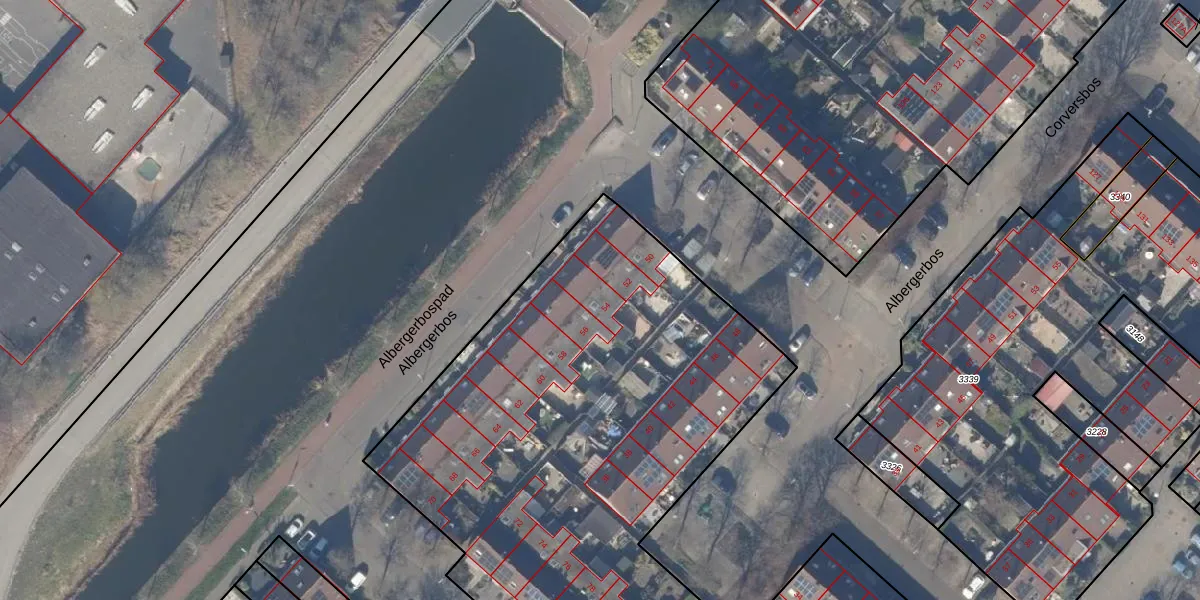 Het perceel waarop Albergerbos 54 staat heeft een oppervlakte van 4865 m². Dit is een zeer groot perceel. De perceeloppervlakte wordt geregistreerd door het Kadaster. Gedetailleerde informatie over de maten van dit perceel kunt u vinden in het rapport Kadastrale kaart met maatvoering van Albergerbos 54.