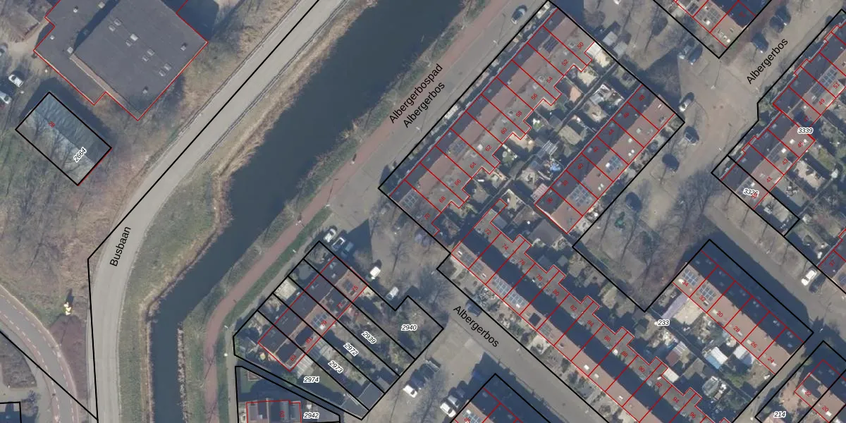 Het perceel waarop Albergerbos 70 staat heeft een oppervlakte van 4865 m². Dit is een zeer groot perceel. De perceeloppervlakte wordt geregistreerd door het Kadaster. Gedetailleerde informatie over de maten van dit perceel kunt u vinden in het rapport Kadastrale kaart met maatvoering van Albergerbos 70.