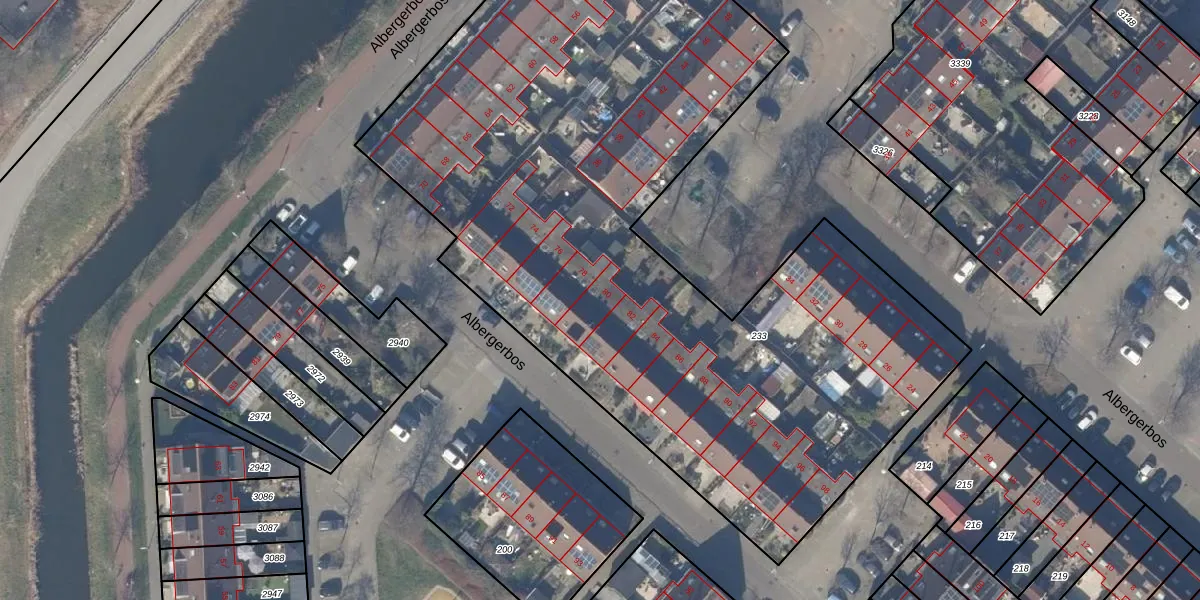 Het perceel waarop Albergerbos 80 staat heeft een oppervlakte van 4865 m². Dit is een zeer groot perceel. De perceeloppervlakte wordt geregistreerd door het Kadaster. Gedetailleerde informatie over de maten van dit perceel kunt u vinden in het rapport Kadastrale kaart met maatvoering van Albergerbos 80.