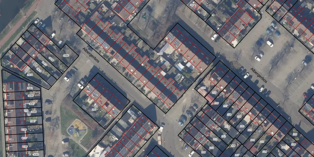 Het perceel waarop Albergerbos 92 staat heeft een oppervlakte van 4865 m². Dit is een zeer groot perceel. De perceeloppervlakte wordt geregistreerd door het Kadaster. Gedetailleerde informatie over de maten van dit perceel kunt u vinden in het rapport Kadastrale kaart met maatvoering van Albergerbos 92.