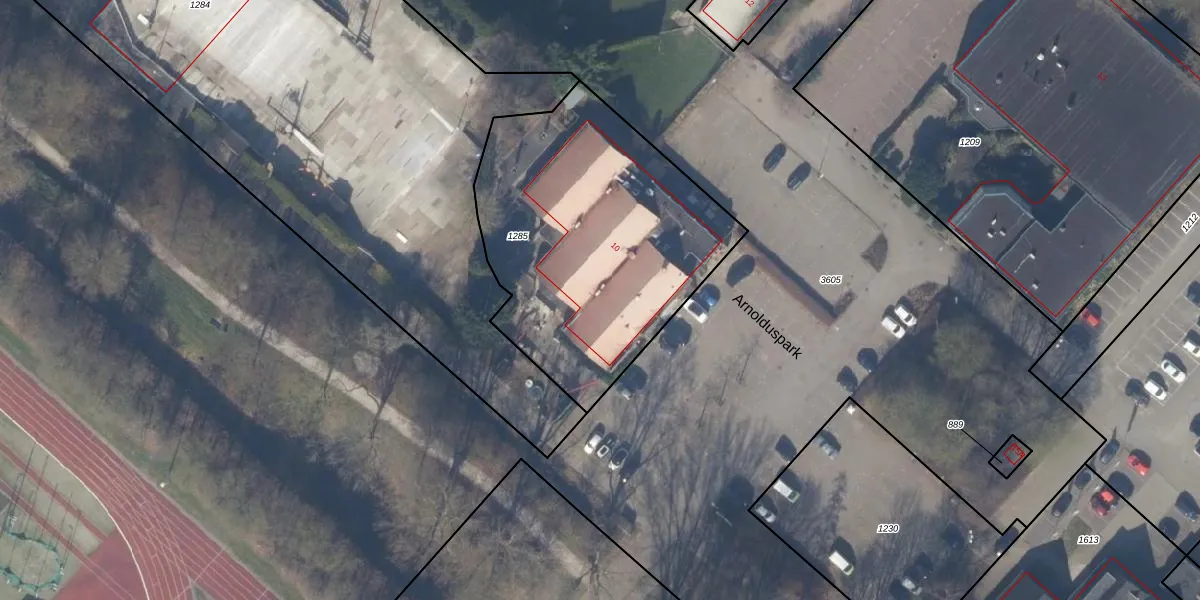Het perceel waarop Arnolduspark 10 staat heeft een oppervlakte van 1445 m². Dit is een zeer groot perceel. De perceeloppervlakte wordt geregistreerd door het Kadaster. Gedetailleerde informatie over de maten van dit perceel kunt u vinden in het rapport Kadastrale kaart met maatvoering van Arnolduspark 10.