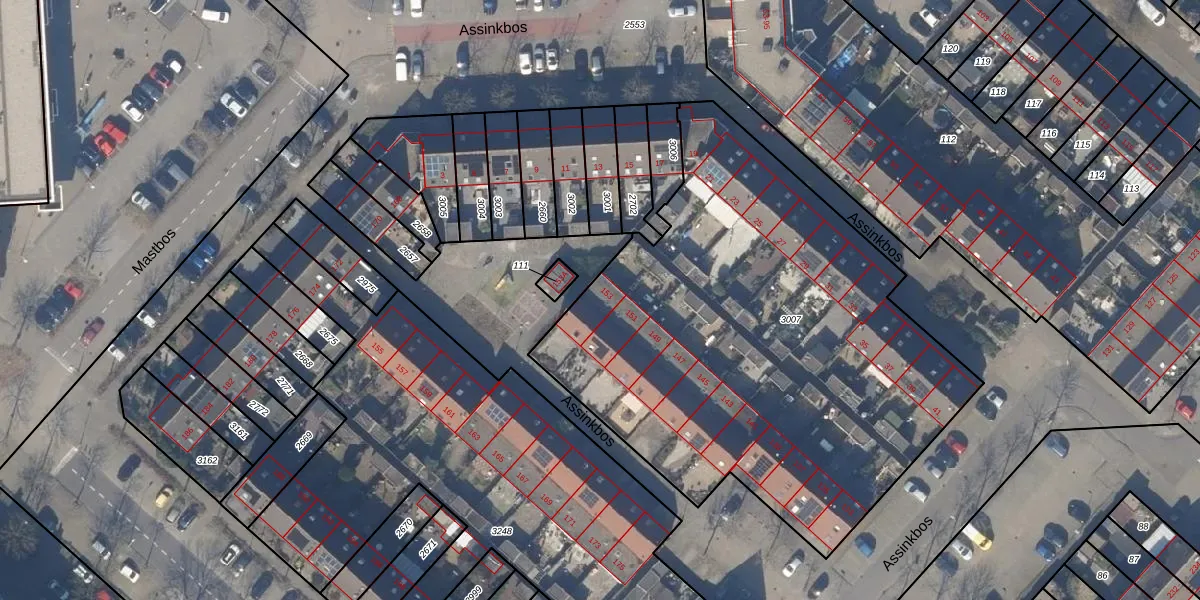 Het perceel waarop Assinkbos 153 staat heeft een oppervlakte van 2879 m². Dit is een zeer groot perceel. De perceeloppervlakte wordt geregistreerd door het Kadaster. Gedetailleerde informatie over de maten van dit perceel kunt u vinden in het rapport Kadastrale kaart met maatvoering van Assinkbos 153.