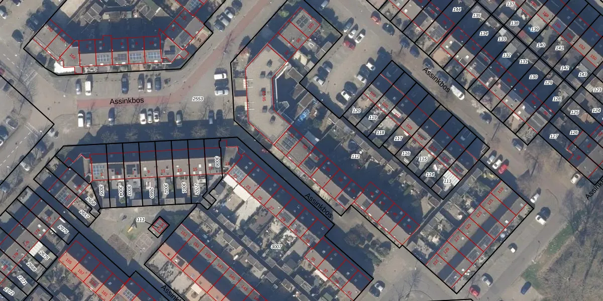 Het perceel waarop Assinkbos 59 staat heeft een oppervlakte van 3225 m². Dit is een zeer groot perceel. De perceeloppervlakte wordt geregistreerd door het Kadaster. Gedetailleerde informatie over de maten van dit perceel kunt u vinden in het rapport Kadastrale kaart met maatvoering van Assinkbos 59.