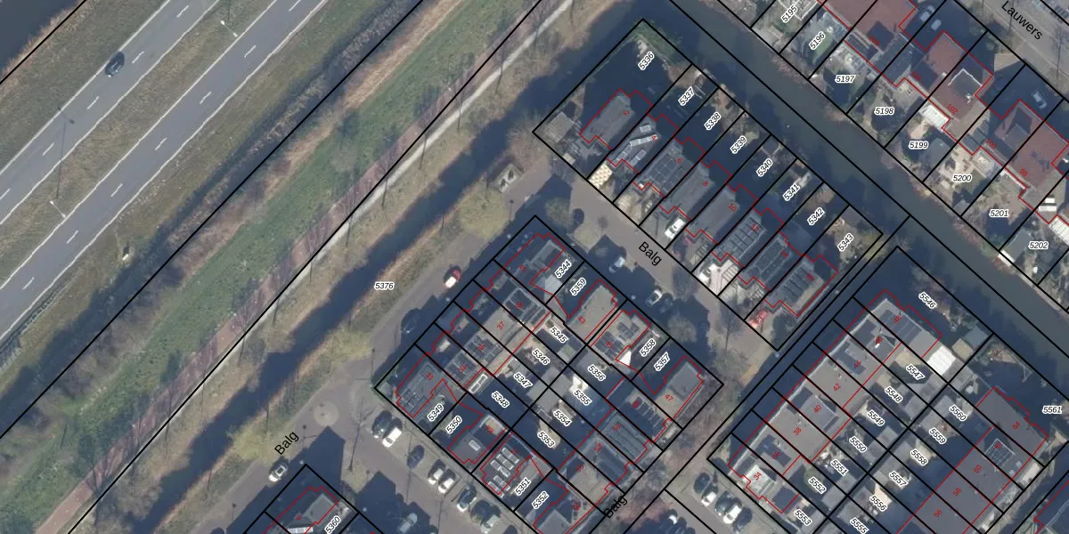 Het perceel waarop Balg 41 staat heeft een oppervlakte van 144 m². Dit is een middelgroot perceel. De perceeloppervlakte wordt geregistreerd door het Kadaster. Gedetailleerde informatie over de maten van dit perceel kunt u vinden in het rapport Kadastrale kaart met maatvoering van Balg 41.
