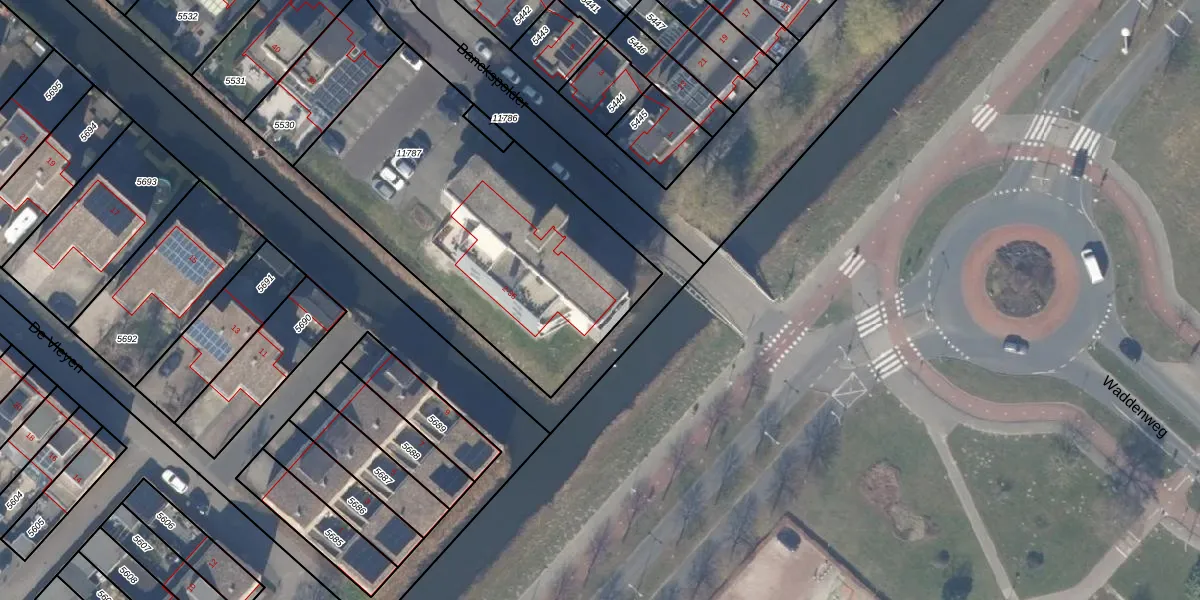 Het perceel waarop Banckspolder 16 staat heeft een oppervlakte van 1580 m². Dit is een zeer groot perceel. De perceeloppervlakte wordt geregistreerd door het Kadaster. Gedetailleerde informatie over de maten van dit perceel kunt u vinden in het rapport Kadastrale kaart met maatvoering van Banckspolder 16.