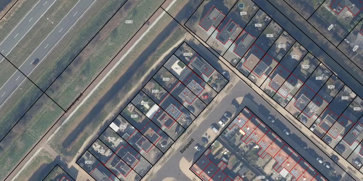 Het perceel waarop Banjaard 16 staat heeft een oppervlakte van 295 m². Dit is een middelgroot perceel. De perceeloppervlakte wordt geregistreerd door het Kadaster. Gedetailleerde informatie over de maten van dit perceel kunt u vinden in het rapport Kadastrale kaart met maatvoering van Banjaard 16.